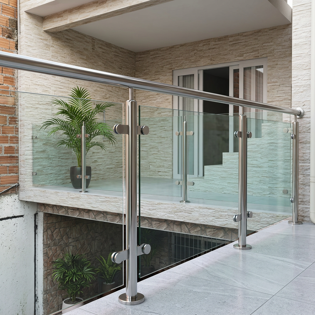 Soluções com vidro e estrutura reforçada para escadas, sacadas e mezaninos, unindo segurança, elegância e modernidade.